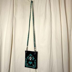 Faux Leather/Turquoise Western Theme Crossbody Bag EUC