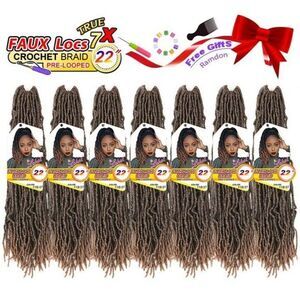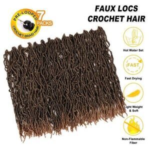Faux Locs Crochet Hair New Soft Locs Crochet Hair Pre Looped Curly Wavy Boho Goddess Locs Premium Synthetic Braiding Hair Extensions Lohot 22 Inch 7 Packs 18 Strands/Pack (T1B/27)