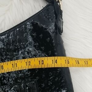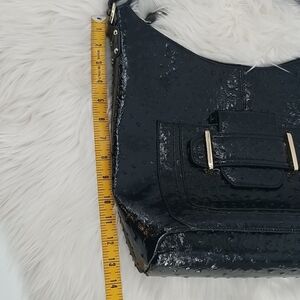 Beautiful Sandra Roberts Squared Large Hobo Bag with Gold Accents & Stunning Shiny Black Textured Faux Ostrich Leather. Inside & Outside Pockets & Compartments. Absolutely Gorgeous!!