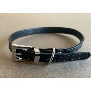 Faux Patent Crocodile Leather X-Small Dog Collar Cat Collar BLACK Alloy Buckle XS