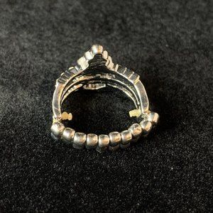 Faux Peal and Diamond Crown Silver Tone Ring