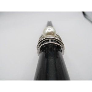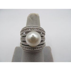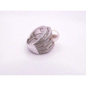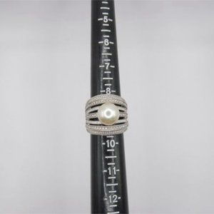 This is a beautiful silver tone Rhinestone and faux pearl statement cocktail ring.