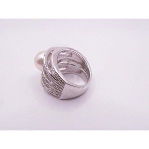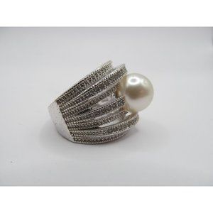 Faux Pearl 7 Tier Band Rhinestone Cocktail Ring signed NVC