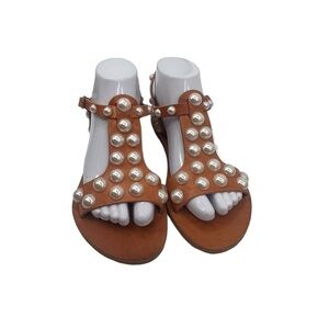 Faux Pearl Adjustable Strap Brown Adjustable Ankle Strap Sandals Size 38 Women's