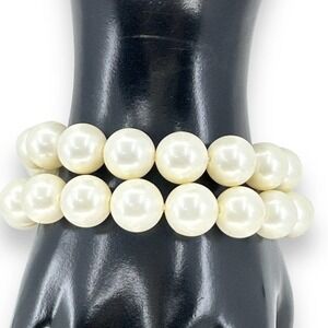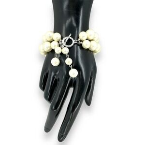 Faux Pearl Bracelet 8.5” Double Beaded Silverton Toggle Clasp