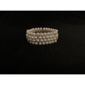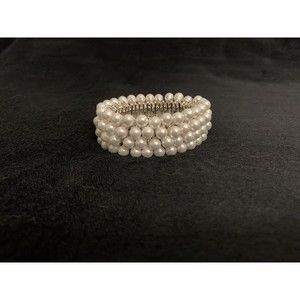 This is a really nice 6 inch substantial bracelet, with 4 rows of faux pearls, and is stretchable.