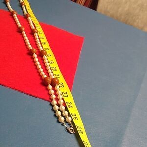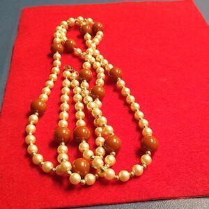 Faux Pearl Brown & Gold Beaded Long Necklace Cottagecore Grandmacore