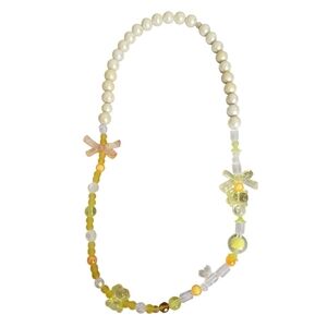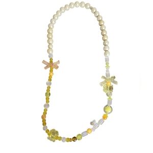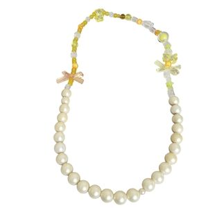 Faux Pearl Coquette Yellow Orange Bear Frosted Glass Clear Barrel Beads Necklace