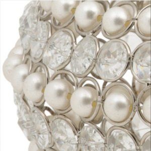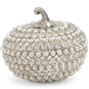 Faux Pearl Crystal Decorative Pumpkin Silver Metal Jewels Elegant Fall Decor 8"