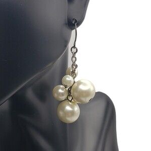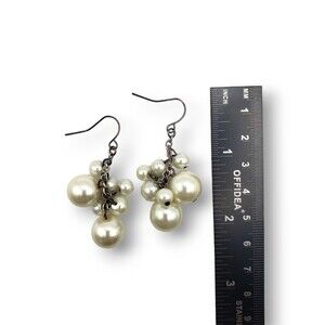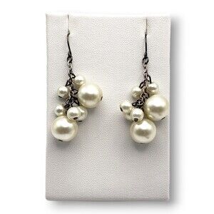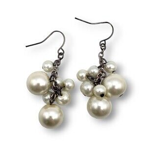 Faux Pearl Dangle Drop Cluster Gunmetal Gray Hook Earrings