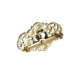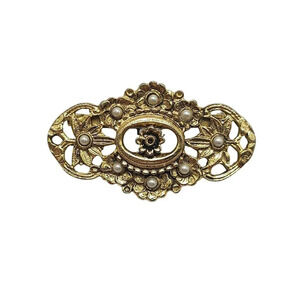 Faux Pearl Floral Bar Openwork Brooch Pin Gold Tone Vintage