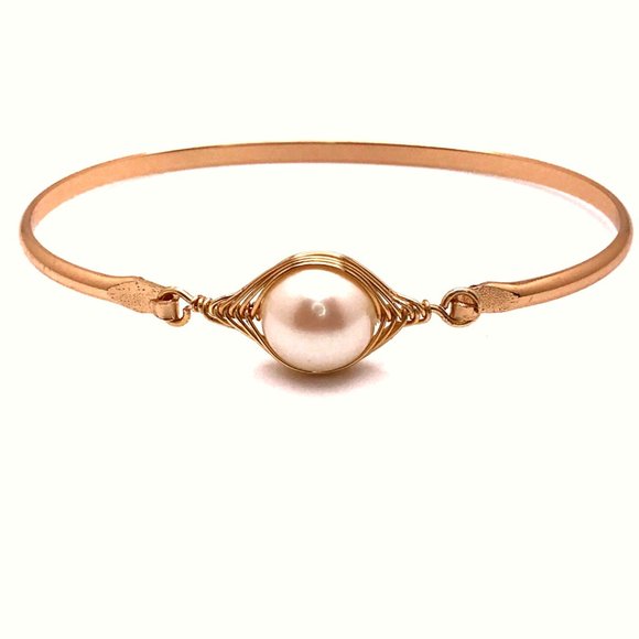 You're sure to dazzle in the 18K gold fill bangle featuring a 12 mm faux Pearl bead wrapped in gold plated wire.