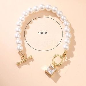 Faux Pearl Gold Tone Crystal Gem Stone Bracelet