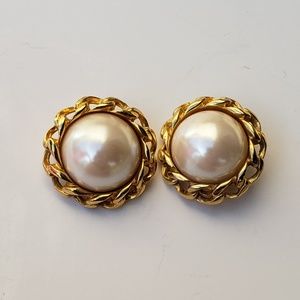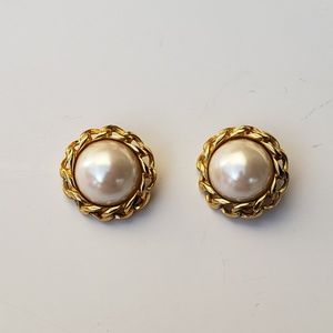 Faux Pearl Gold Tone Twist Clip on Earrings