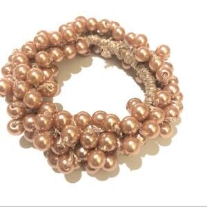 Faux Pearl Hair Scrunchie Tie Accessory Stretchy New Tan Neutral