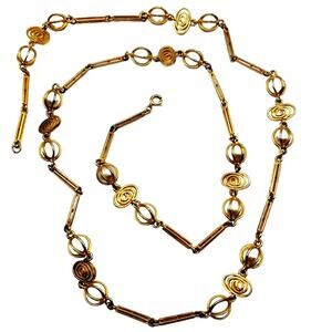 Faux Pearl Long Necklace Gold Tone Scroll Chain Vintage 1970s Flapper 36 1/2"
