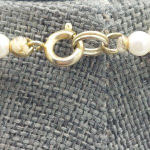 Faux Pearl Long Necklace Single Strand Small Faux Pearl Separator Beads 56" W Clasp