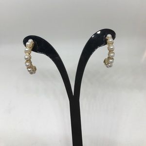 Beautiful Faux Pearl Mini Hoop Earrings. Material: Gold plated base metals, glass pearls. Nickel free and lead free. Thank you for dropping by and if you have any questions, please don't hesitate to message me🌷.
