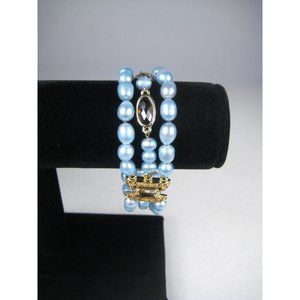 Faux Pearl Multi Strand Beaded Bracelet Goldtone Faceted Rhinestones Jewelry 7 i