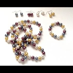 Faux Pearl Necklace Bracelet Earrings Set Spring