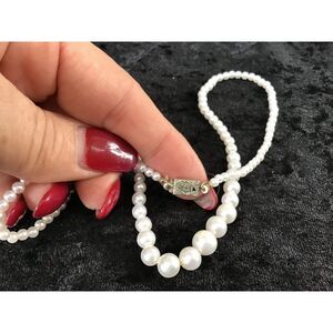 Faux Pearl Necklace Graduated Sizes Glass Bead 16 Inch Box Clasp Vintage Retro