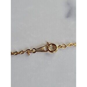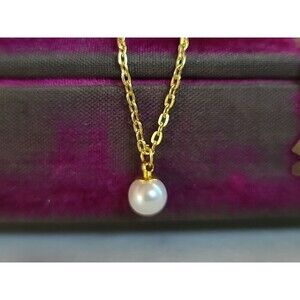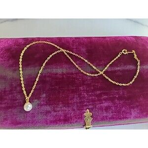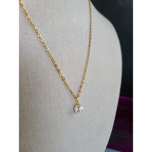 This is a vintage faux pearl pendant necklace on a gold tone metal chain.