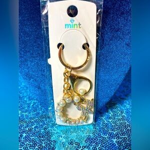 Faux Pearl & Rhinestone Butterfly Keychain, NIP