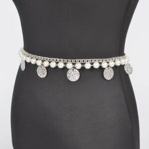 Add elegance to your waistline with the Faux Pearl Round Metal Chain Belt. Featuring delicate pearl accents linked by polished metal, this belt is a perfect accessory for dresses, jumpsuits, or high-waisted bottoms. Lightweight and adjustable, it brings a feminine finish to any outfit.