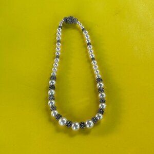 Faux Pearl Silver Bead Magnetic Clasp 16" Necklace