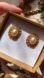 Faux Pearl White Oval Post Earrings w. Delicate Gold Tone Filigree Frame