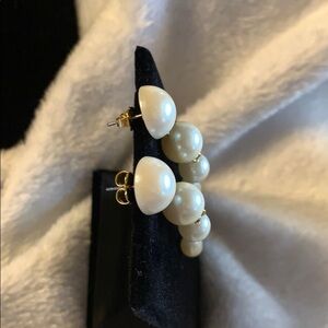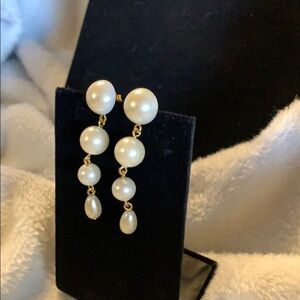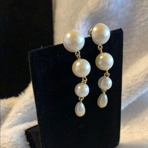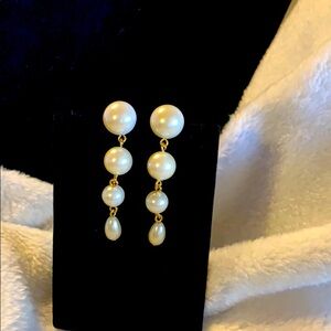 Faux Pearl and Gold 2” Dangling Post Earrings