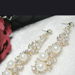 Faux Pearl and Rhinestone Chandelier Earrings