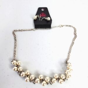 Faux Pearl and Rhinestone Necklace and Earrings NWOT