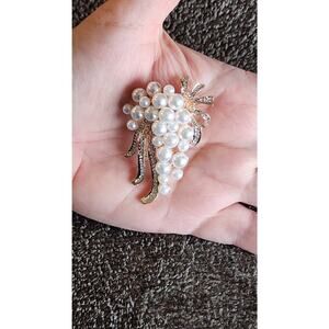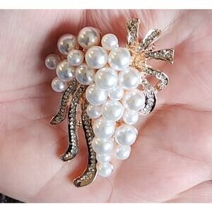Faux Pearl and Rhinestone Stylized Grapes Brooch Beautiful Elegant
