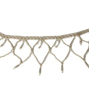 New old stock, faux pearls beaded Christmas tree garland hand-assembled into a beautiful lace. Made by The House of Louis Nichole in 1999. 6 ft long. Open box.