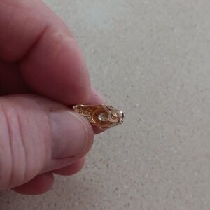 Faux Peridot Silver Oval Set with Four Prong Setting Gold BackGround with Silver "X's".