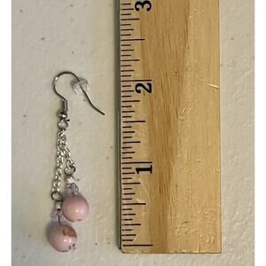 1-Faux Pink Turquoise & Pink Crystal Beaded Drop Dangle Earrings w/Hook & Silver Tone Round Beads