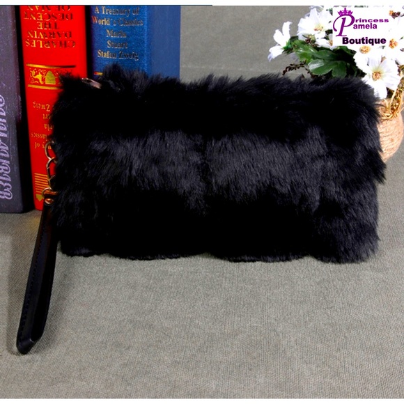 Faux Rabbit Fur Mini Handbag Shoulder Bag or could be worn as wristlet