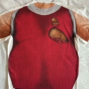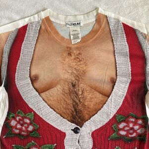 Faux Real Mans Hairy Chest In Ugly Christmas Sweater Vest T shirt Size Medium