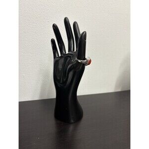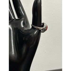 Faux Red Carnelian Stone On Silvertone Band Ring Costume Ring Size 9.75
