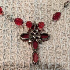 Elevate your jewelry collection with this exquisite pendant necklace, featuring a vibrant red crystal that captures the light with every turn. The faux leather cord, measuring a comfortable 16 inches, showcases the crystal's rich hue and complements its vintage/antique look. The lobster clasp closure ensures a secure fit while the wire chain adds a touch of industrial charm. Handcrafted with care, this unbranded piece boasts an adjustable design, making it suitable for various neck sizes. The cross-shaped pendant and the simplicity of the faux red gemstone garnet offer a timeless appeal, perfect for those who appreciate beauty in their accessories.