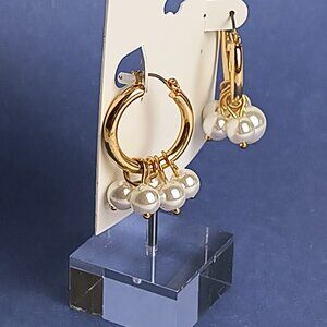 Faux Round Pearl Cha-Cha Hoop Click-Top Earrings Casual Minimalist