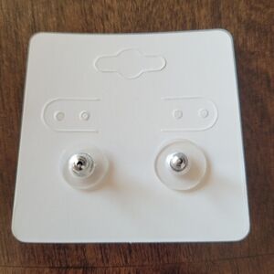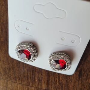 Faux Ruby Red and Rhinestones Stud Silver Tone Earrings