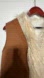 Brown Faux Suede Vest with Shaggy Faux Fur Trim. Embroidery going down the front on both sides and the lower back.