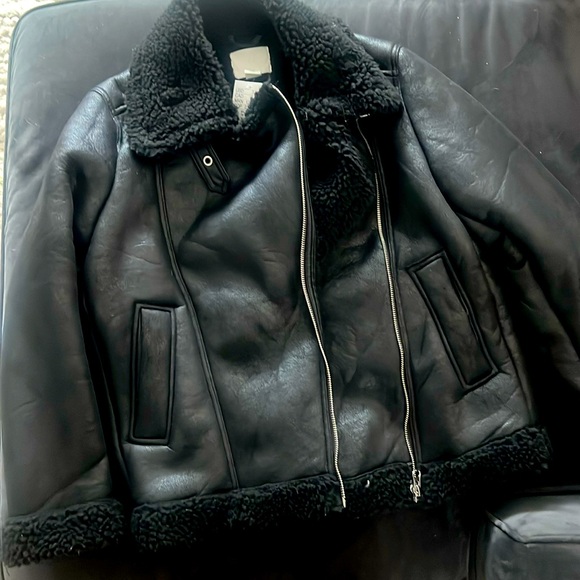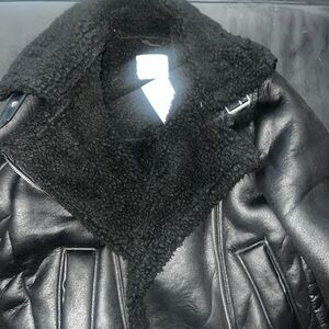 Woman’s black shearling Jacket NWT. Fits loose M-L