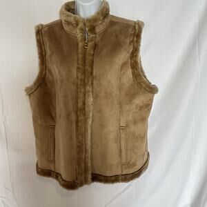 Faux Shearling Jaclyn Smith Vest XXL Suede Look Zip Front Fuzzy Soft Lined