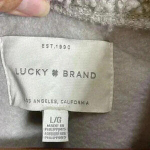 Faux Shearling Lucky Brand Woman’s Jacket, Size Large. Oatmeal colored. NWOT. Warm and stylish! Large pockets on the front, button closure with a collar.