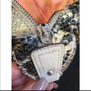 Used. Regular wear. Has a front pocket and 2 small pockets inside with 1 larger zip pocket in the interior. The tab on the exterior zipper came off but I will include it in the interior pocket- it just needs to be put back on. This was always one of my fav. bags.