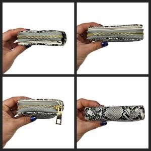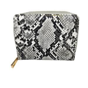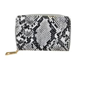 Faux Snake Wallet Black White Gray Python Zip Around Coin Gold Small Compact