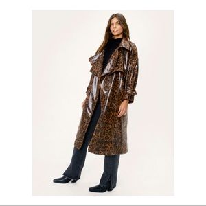 Faux Snakeskin Oversized Pu Trench Coat